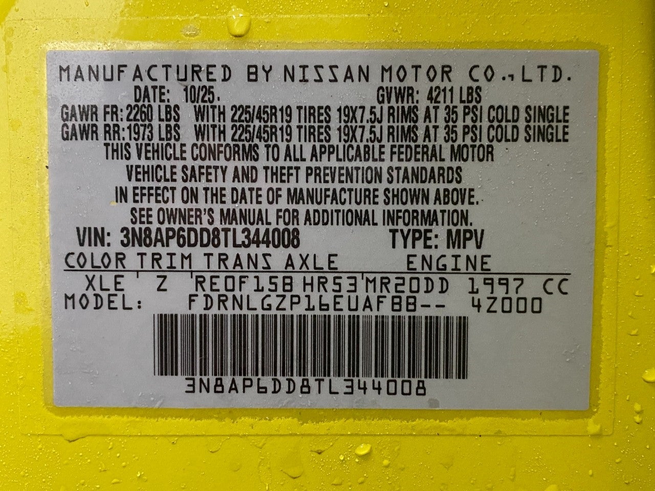 - Front Tire Size: P225/45WR19