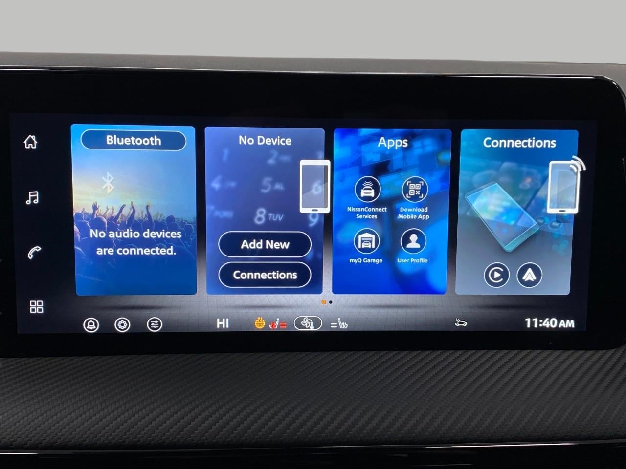 - Radio: AM/FM/SiriusXM Audio System -inc: 12.3" color touchscreen display w/6 speakers, Bluetooth® hands-free phone system, streaming audio via Bluetooth®, NissanConnect Services powered by SiriusXM featuring wireless Apple CarPlay, wireless Android Auto, Siri eyes free and hands-free text messaging assistant, audio and Bluetooth® steering wheel switches and Wi-Fi hotspot