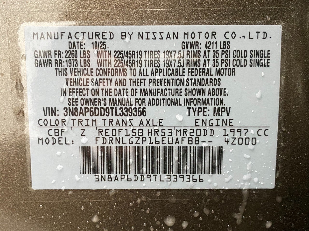 - Rear Tire Size: P225/45WR19