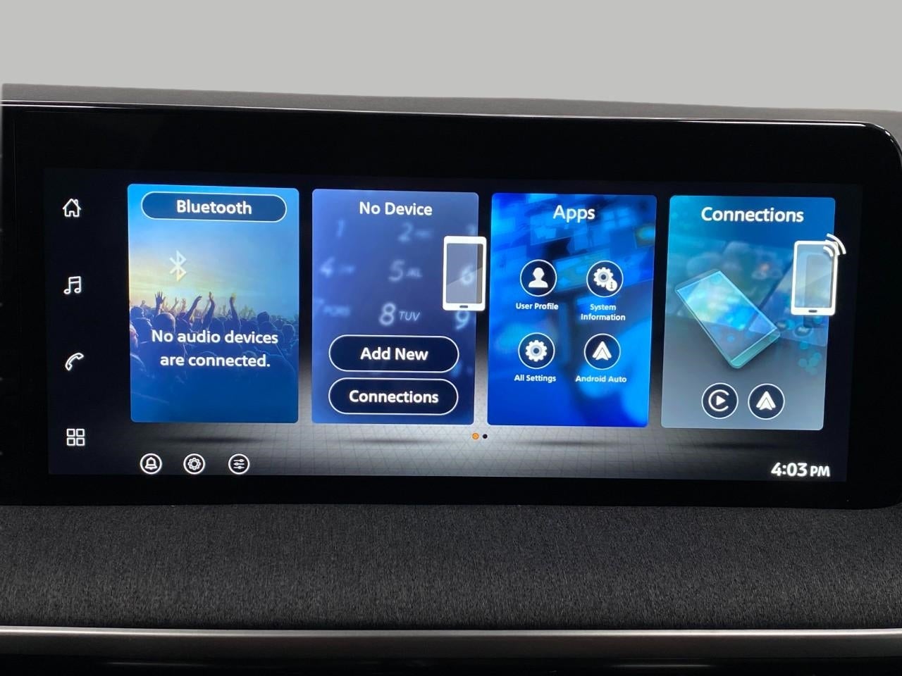 - Radio: AM/FM/SiriusXM Audio System -inc: 12.3" color touchscreen display w/4 speakers, Bluetooth® hands-free phone system, streaming audio via Bluetooth®, NissanConnect featuring wireless Apple CarPlay, wireless Android Auto, Siri eyes free and hands-free text messaging assistant, audio and Bluetooth® steering wheel switches