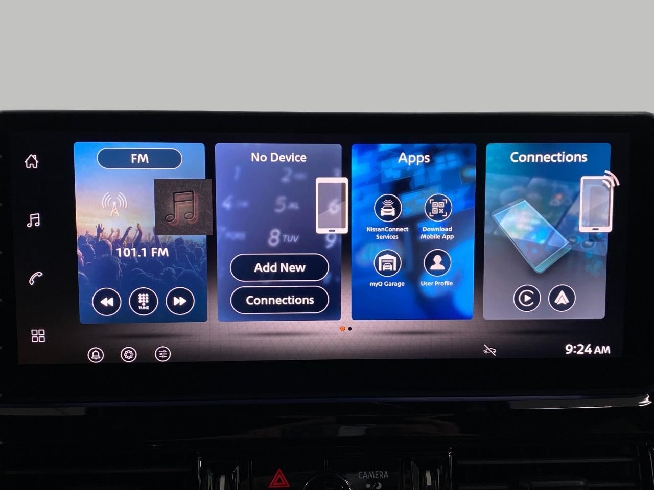 - Radio: AM/FM Audio System w/NissanConnect -inc: 5G Wi-Fi hotspot, wireless Apple CarPlay and Android Auto, 12.3" multi-function information display, SiriusXM satellite radio, 2 front USB connection (1 type C charge and data ports), Bluetooth hands-free phone system, streaming audio and messaging and hands-free text messaging assistant