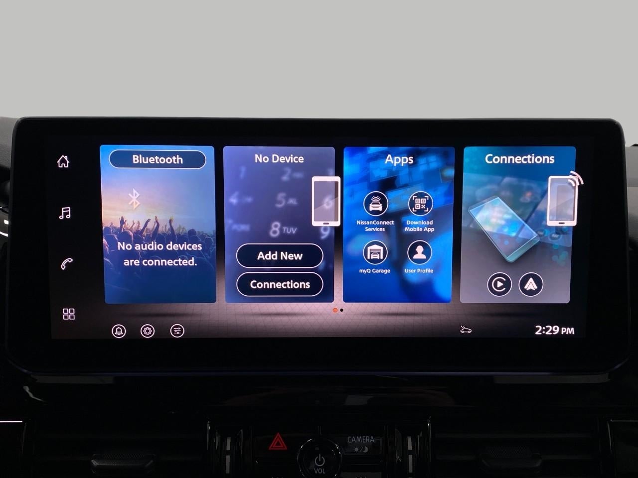 - Radio: AM/FM Audio System w/NissanConnect -inc: 6 speakers, 5G Wi-Fi hotspot, wireless Apple CarPlay and Android Auto, 12.3" multi-function information display, SiriusXM satellite radio, 2 front USB connection (1 type C charge and data ports), Bluetooth® hands-free phone system, streaming audio and messaging and hands-free text messaging assistant