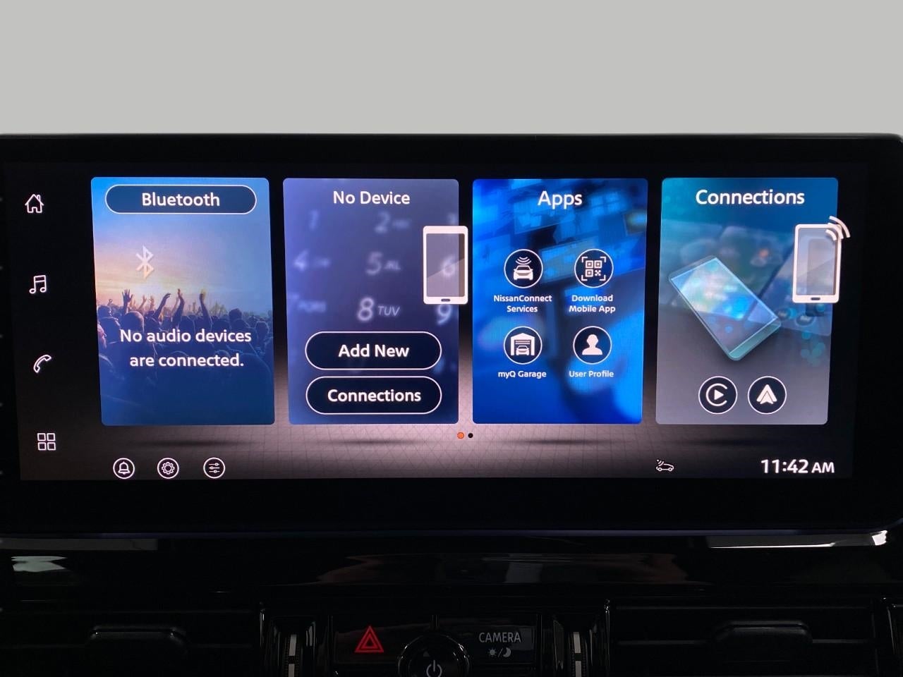 - Radio: AM/FM Audio System w/NissanConnect -inc: 6 speakers, 5G Wi-Fi hotspot, wireless Apple CarPlay and Android Auto, 12.3" multi-function information display, SiriusXM satellite radio, 2 front USB connection (1 type C charge and data ports), Bluetooth® hands-free phone system, streaming audio and messaging and hands-free text messaging assistant