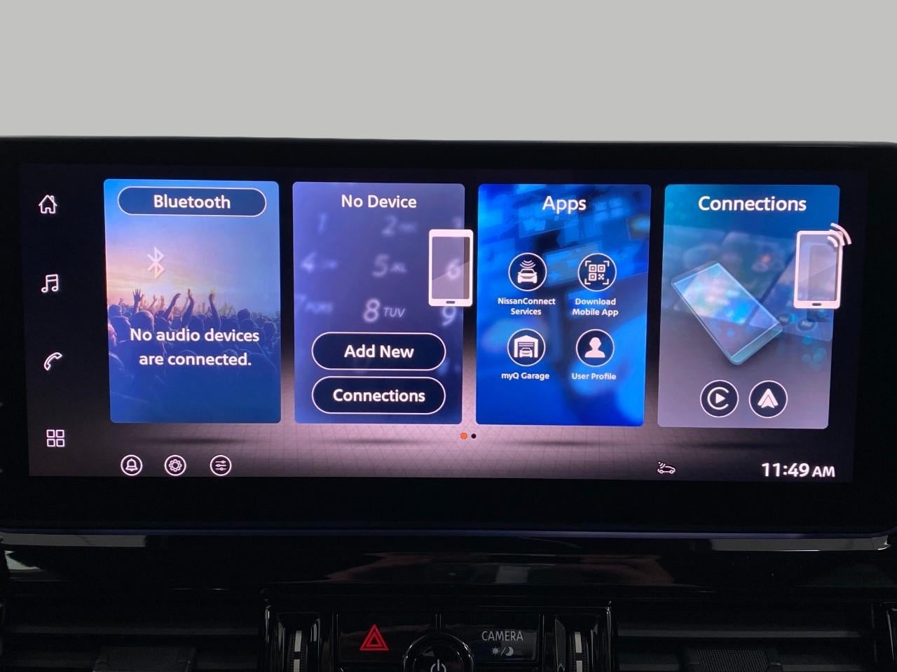 - Radio: AM/FM Audio System w/NissanConnect -inc: 6 speakers, 5G Wi-Fi hotspot, wireless Apple CarPlay and Android Auto, 12.3" multi-function information display, SiriusXM satellite radio, 2 front USB connection (1 type C charge and data ports), Bluetooth® hands-free phone system, streaming audio and messaging and hands-free text messaging assistant