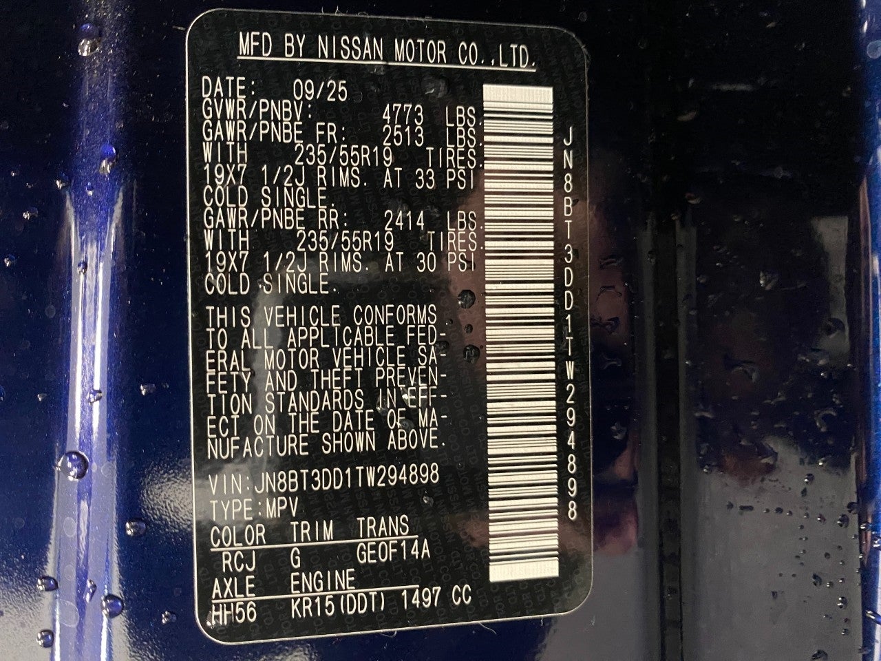 VIN: JN8BT3DD1TW294898
