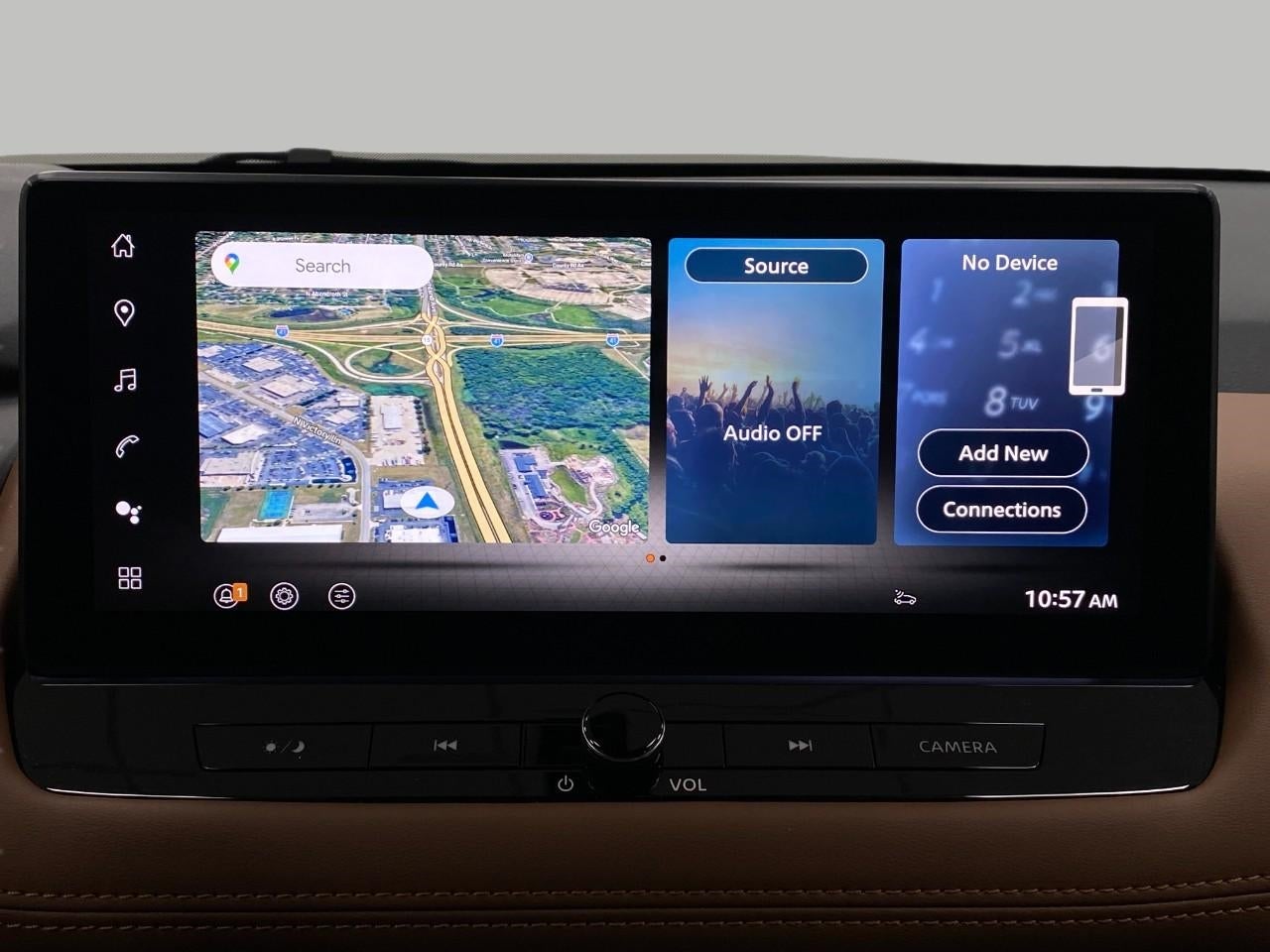 - Radio: AM/FM NissanConnect w/Navigation -inc: SiriusXM 360L, hybrid radio, enhanced voice recognition (one shot VDE, natural language understanding), Active Noise Cancellation, wireless Apple CarPlay, wireless Android Auto, 12.3" color HD display, Bluetooth®, 2 front USB type-C, Wi-Fi hotspot, Alexa Built-In, Google built-in: Google Assistant, Play Store, maps, data, NissanConnect Services powered by SiriusXM, SiriusXM Traffic and SiriusXM Travel Link