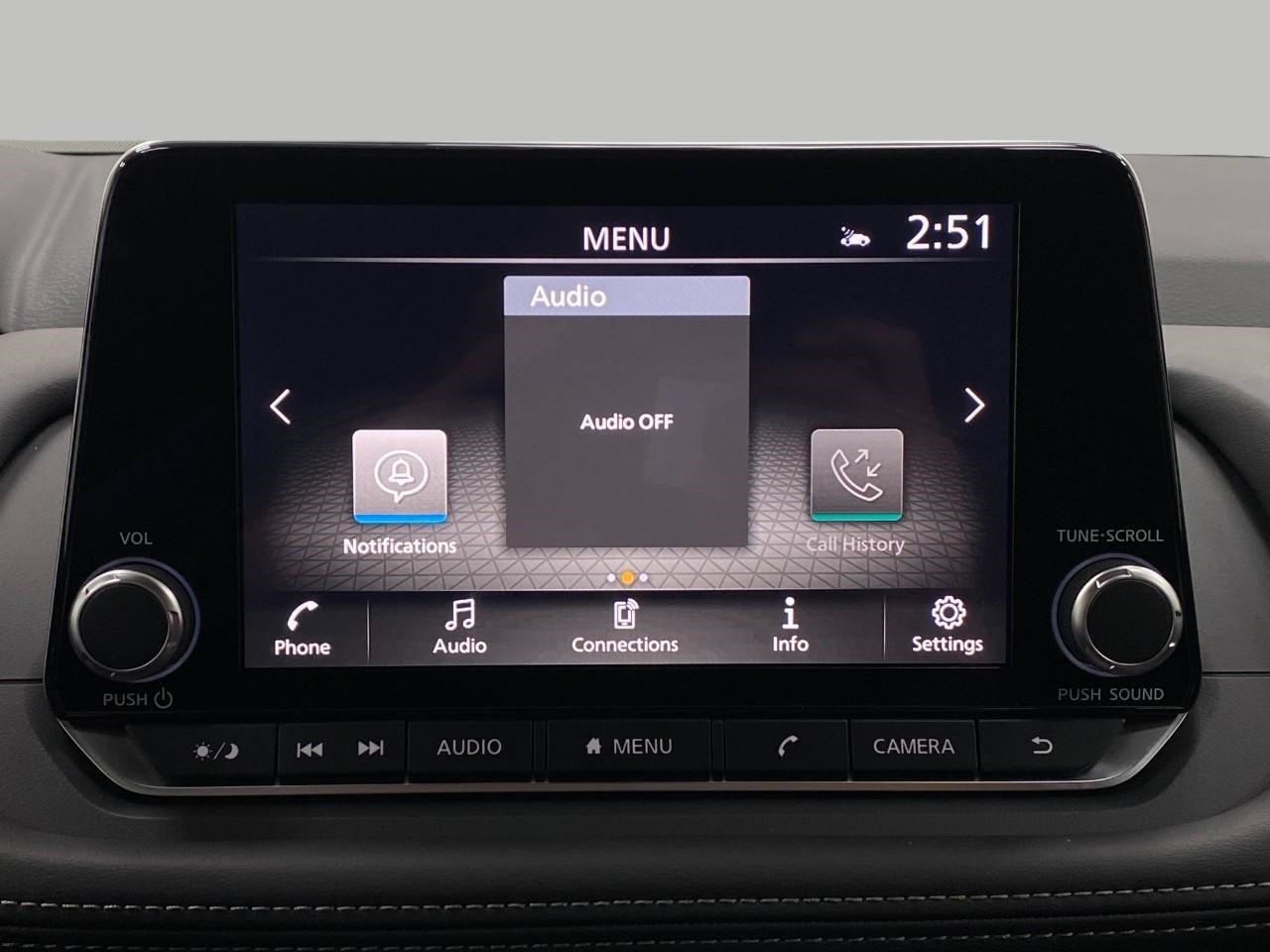 - Radio: AM/FM NissanConnect -inc: 6 speakers plus 2 tweeters, Apple CarPlay, Android Auto, 8" color touch screen display, Bluetooth®, 2 front USB type-C, Wi-Fi hotspot and NissanConnect Services powered by SiriusXM