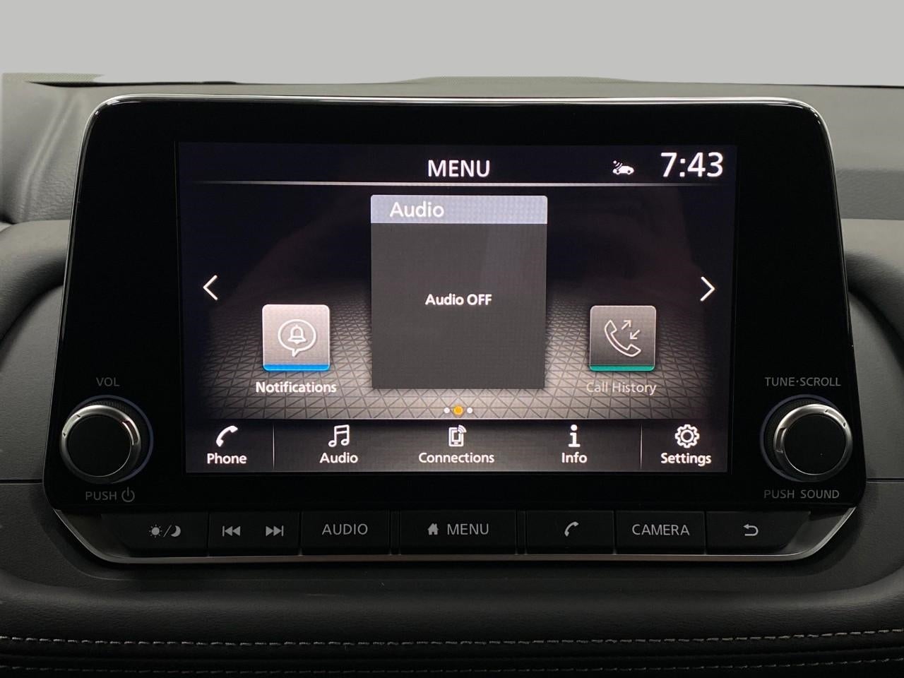 - Radio: AM/FM NissanConnect -inc: 6 speakers plus 2 tweeters, Apple CarPlay, Android Auto, 8" color touch screen display, Bluetooth®, 2 front USB type-C, Wi-Fi hotspot and NissanConnect Services powered by SiriusXM