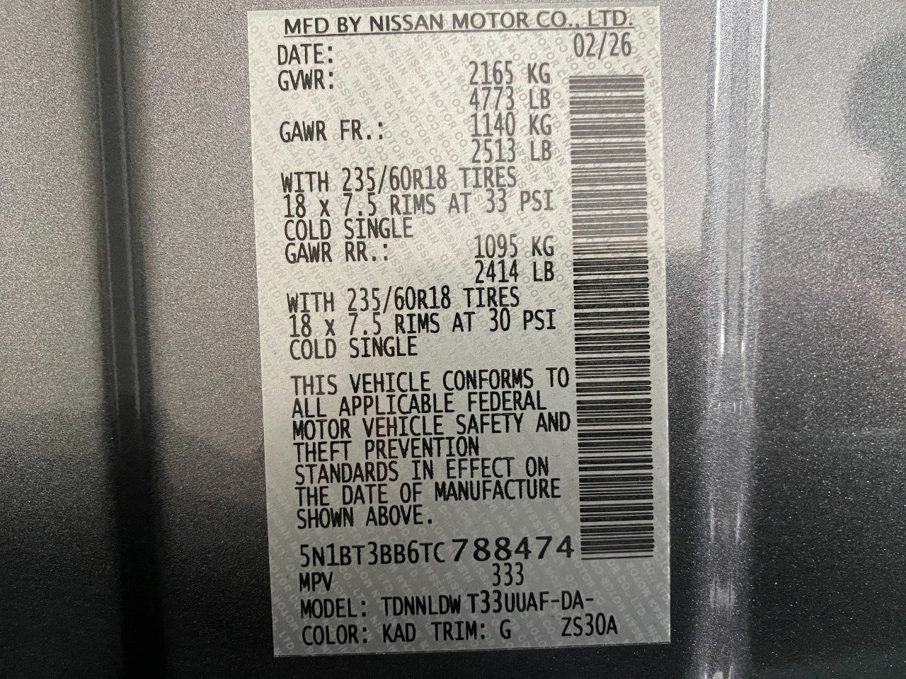 - Tires: P235/60R18 All-Season