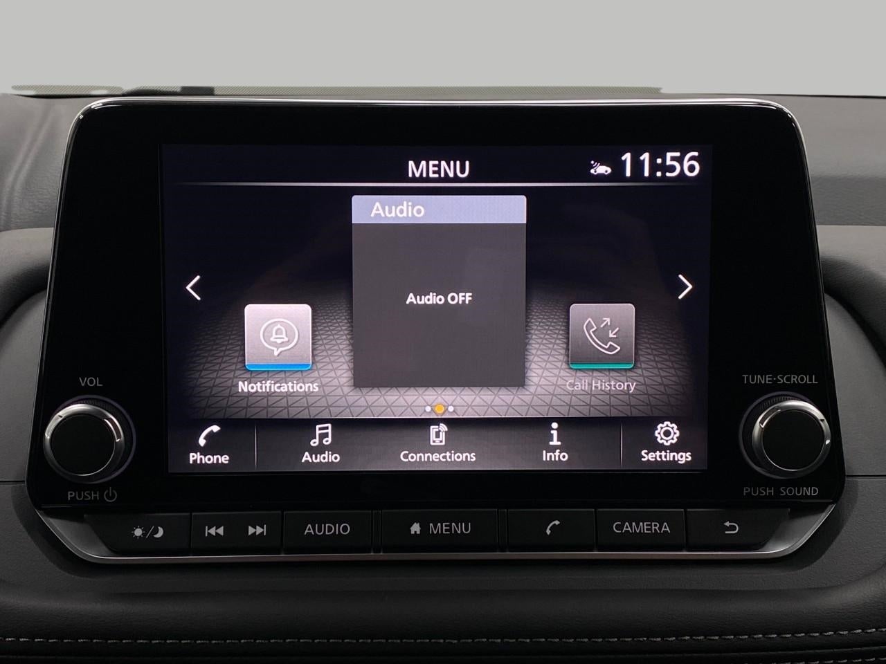 - Radio: AM/FM NissanConnect -inc: 6 speakers plus 2 tweeters, Apple CarPlay, Android Auto, 8" color touch screen display, Bluetooth®, 2 front USB type-C, Wi-Fi hotspot and NissanConnect Services powered by SiriusXM