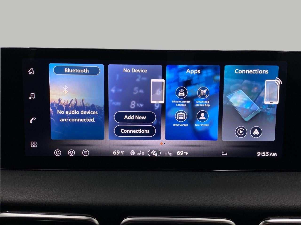 - Radio: AM/FM w/RDS/MP3 -inc: 6 speakers, 12.3" NissanConnect multimedia center display, Bluetooth® hands-free phone system, streaming audio via Bluetooth®, hands-free text messaging assistant, Siri Eyes Free, Google Assistant voice recognition, wireless Apple CarPlay and Android Auto, NissanConnect services, Wi-Fi hotspot, Over-The-Air (OTA) updating for headunit firmware via Wi-Fi WPA2 connection and (2) front USB connection port (type C)