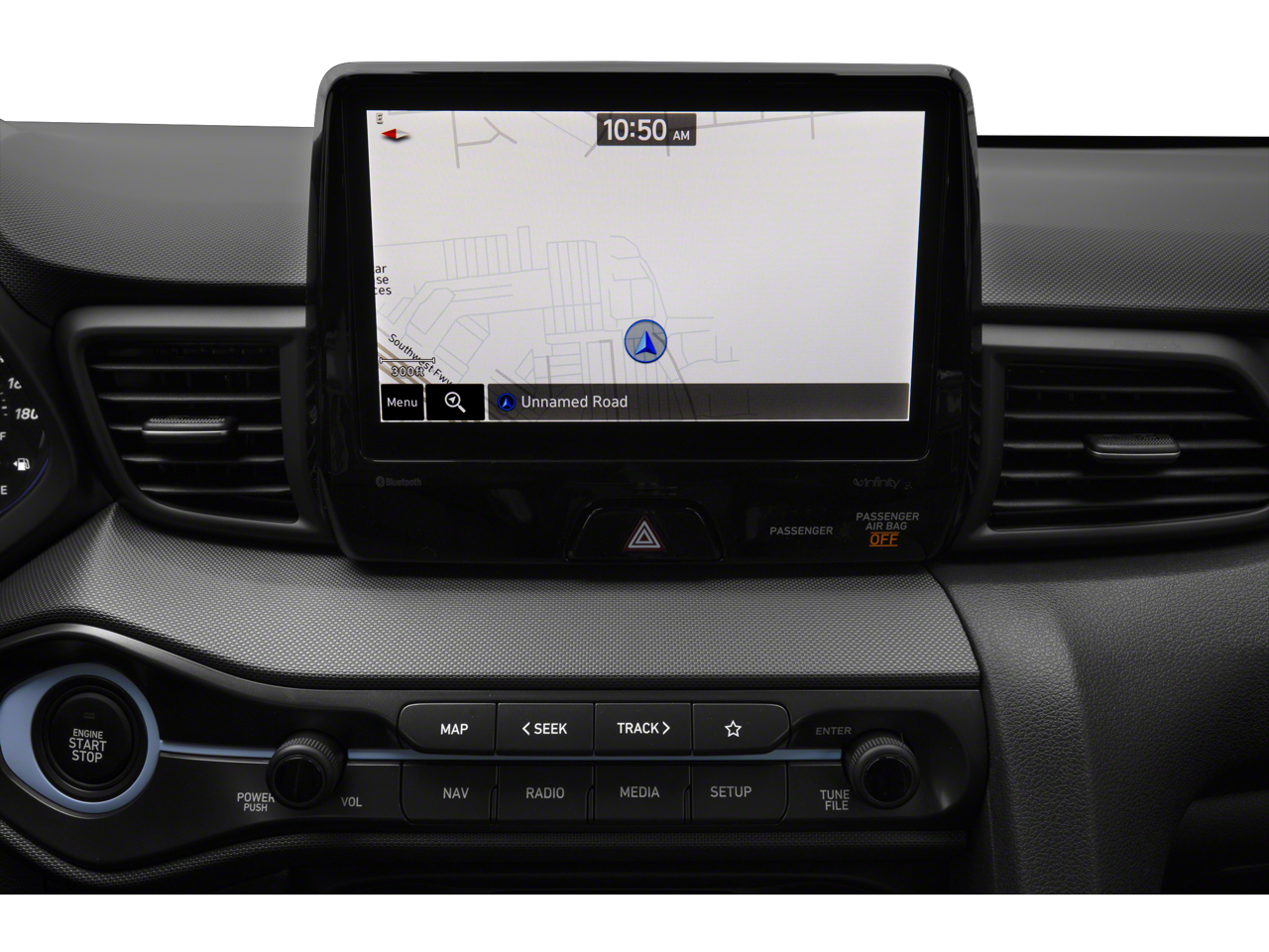 - Radio: AM/FM/HD/SiriusXM Infinity Premium Audio -inc: 8" display navigation 5.0, N specific menus, 8 speakers including subwoofer w/external amp, Bluetooth® hands-free phone system w/voice recognition, Apple CarPlay and Android Auto, dual charging USB ports (1 data and 2 power), speed-sensitive automatic volume control and Blue Link connected car system